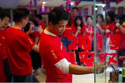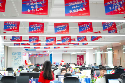 10号晚上电商办公室也组织了一场别具生面的“我在ror体育双十一”文化活动为双十一销售助威,运营中心副总裁许清池,共享中心副总裁刘莹,女性健康产业发展部总裁许自淡等集团多位领导也赶赴现场,在零点时一同等待双十一销售拉开序幕。
