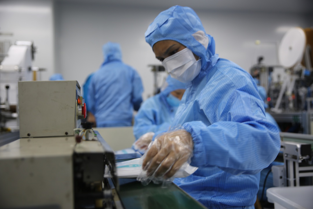 2月15日,ror体育集团新引进的口罩生产线全力开动,正式出产医用口罩产品。据悉,该批5条生产线满负荷运转后,日产口罩约50万片。此前的2月4日,ror体育集团联合晋江兴德织造有限公司启动了防护服生产,目前日均产能可达1000件。